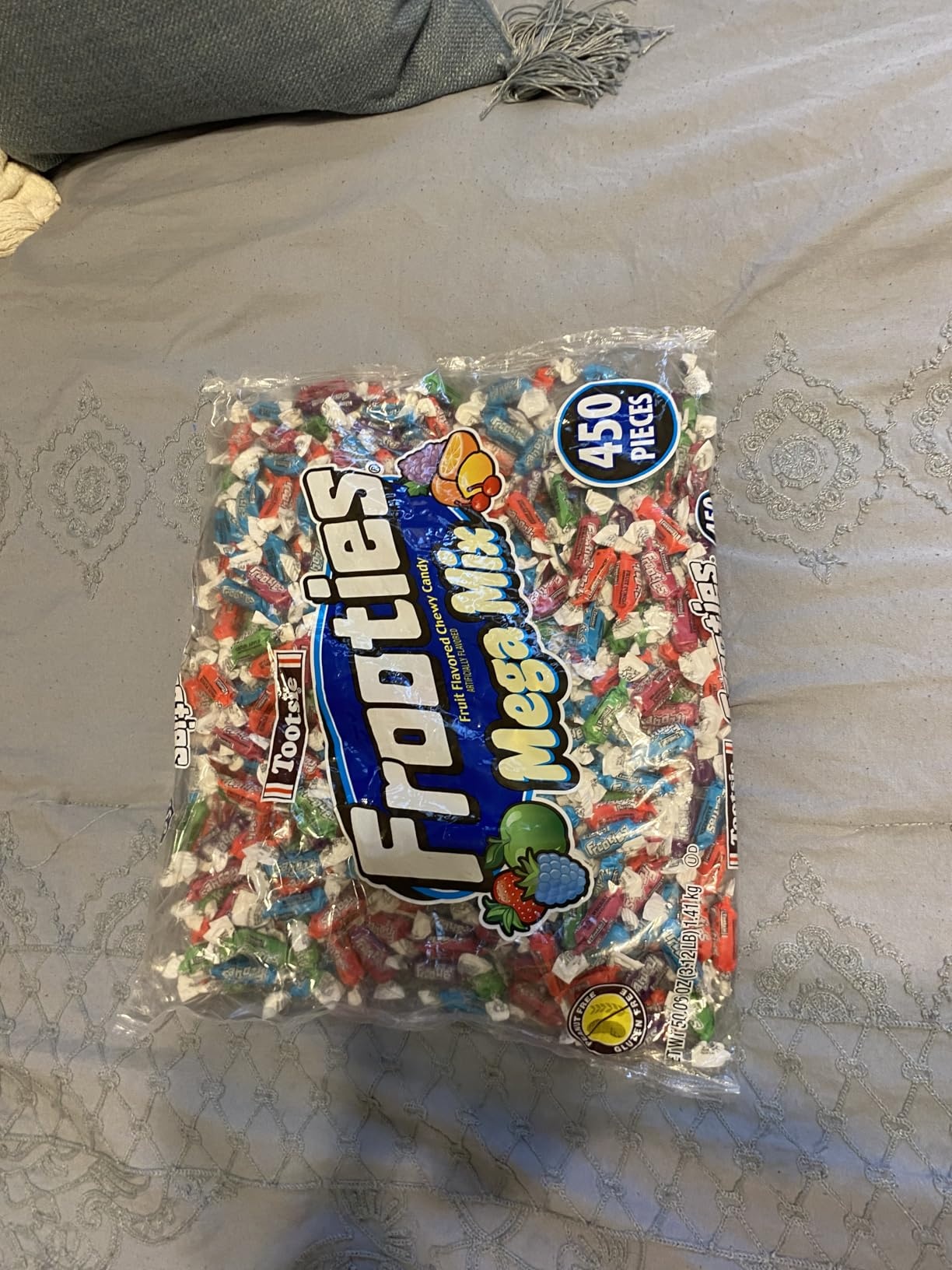 The 450 Pieces Assorted Fruit Chewy Candy bag is huge – over 3 lbs of colorful, fruity chews. Individually wrapped keeps them fresh. Perfect for parties or Halloween – kids went crazy for the flavors!